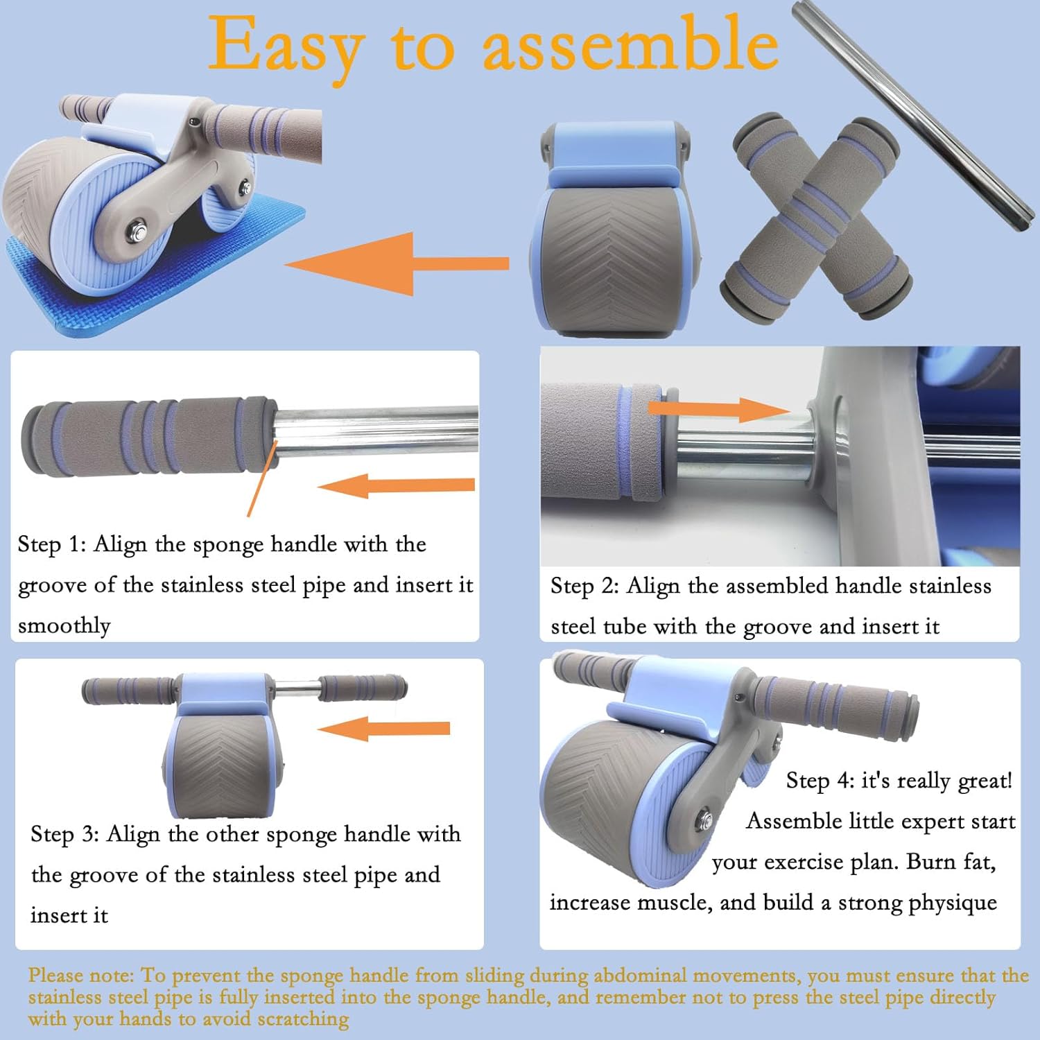• [Durable and High Quality Material] The auto rebound ab wheel is made of stainless steel, plastic and sponge. Triangle structure design, thickened steel tube, load capacity up to 300lbs, meets the needs of most fitness enthusiasts; Two wheels are made of tire-like material to ensure no noise or floor scratches. The thickened sponge handle absorbs sweat, non-slip, providing a more comfortable abs exercise experience. , Eco-friendly and durable. Quickly increase your six-pack abs, shape your abs and waistline to achieve a perfect silhouette and help you realize the hourglass figure of your dreams!