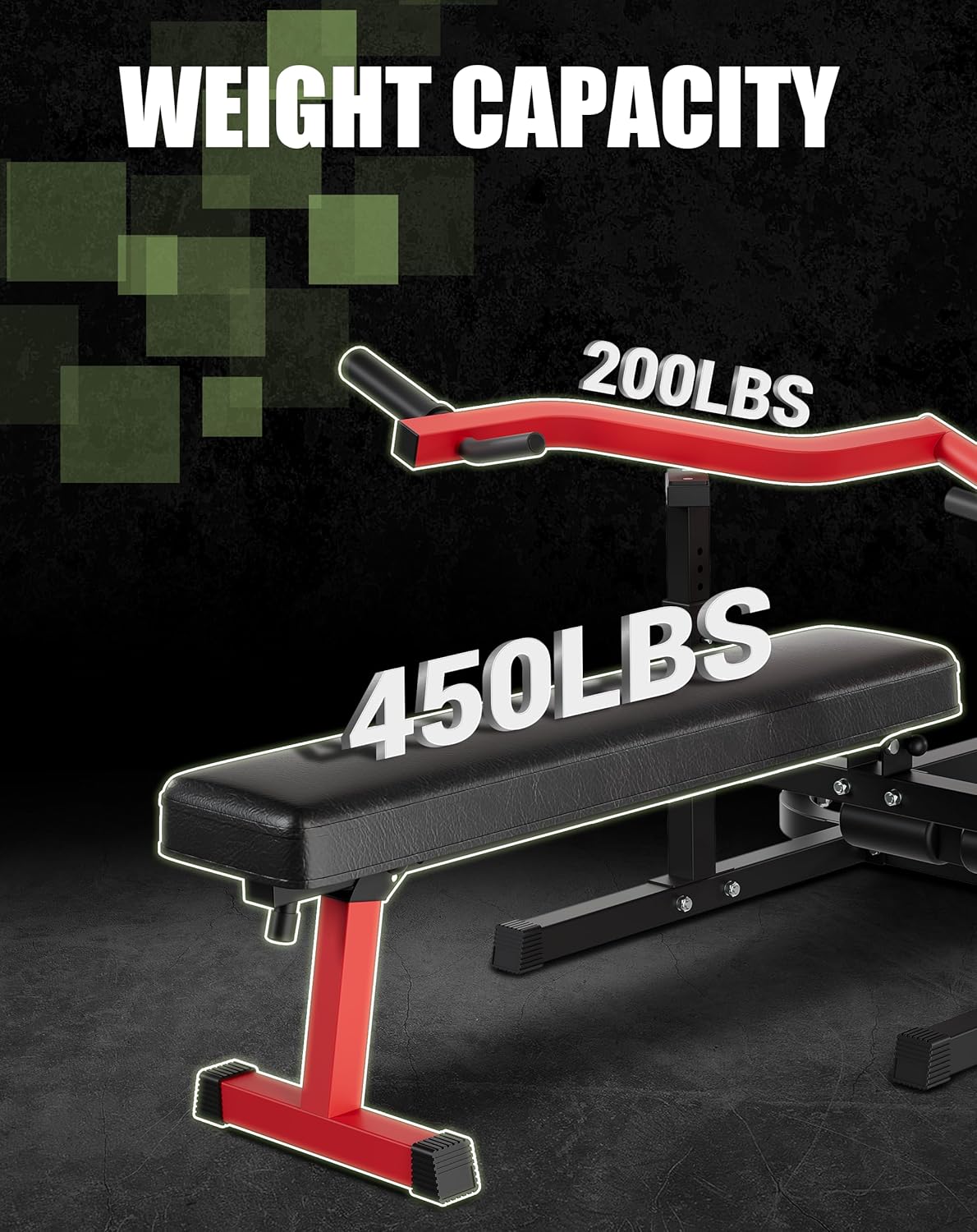 - Compact and Space-Saving: This foldable bench press machine measures 57.8W x 28D x 54.3H inches, occupying only 11 sq. ft. of floor space