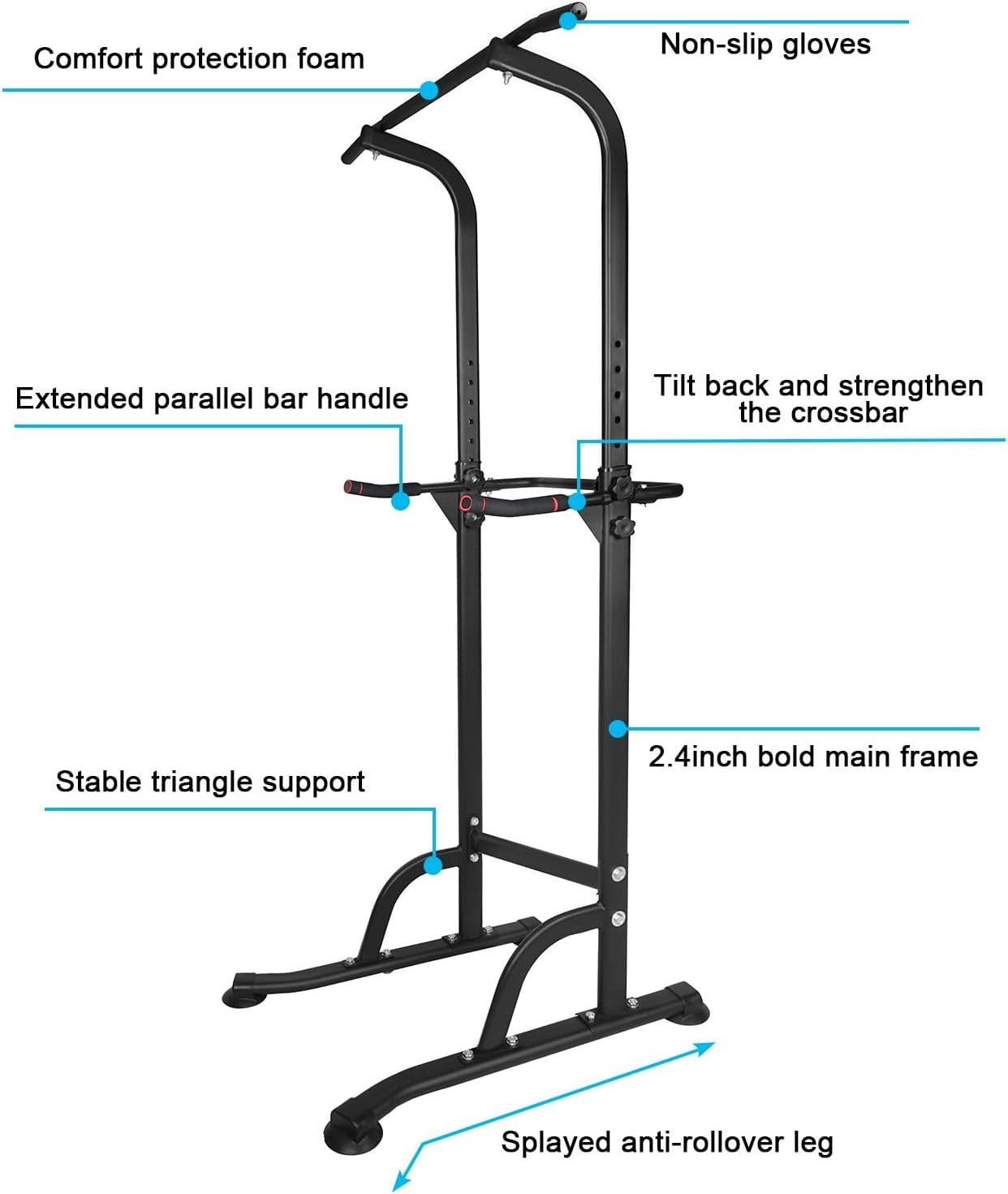 Power Tower Workout Dip Station Pull Up Bar, Height Adjustable Multi-Function Dip Stand for Home Gym Strength Training Fitness Equipment